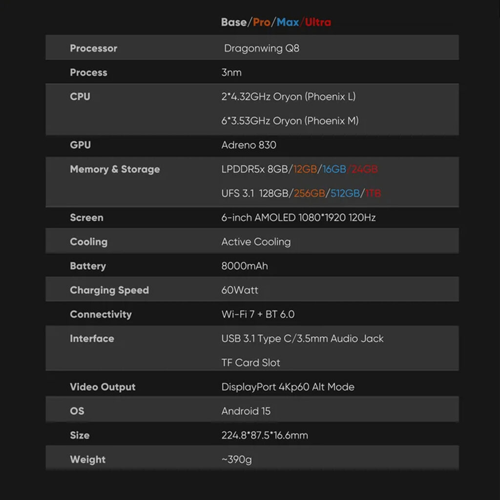 Memory and Storage Offering a comprehensive range of configurations, the Odin 3 is available with ultra-fast LPDDR5x RAM at 5300MHz: