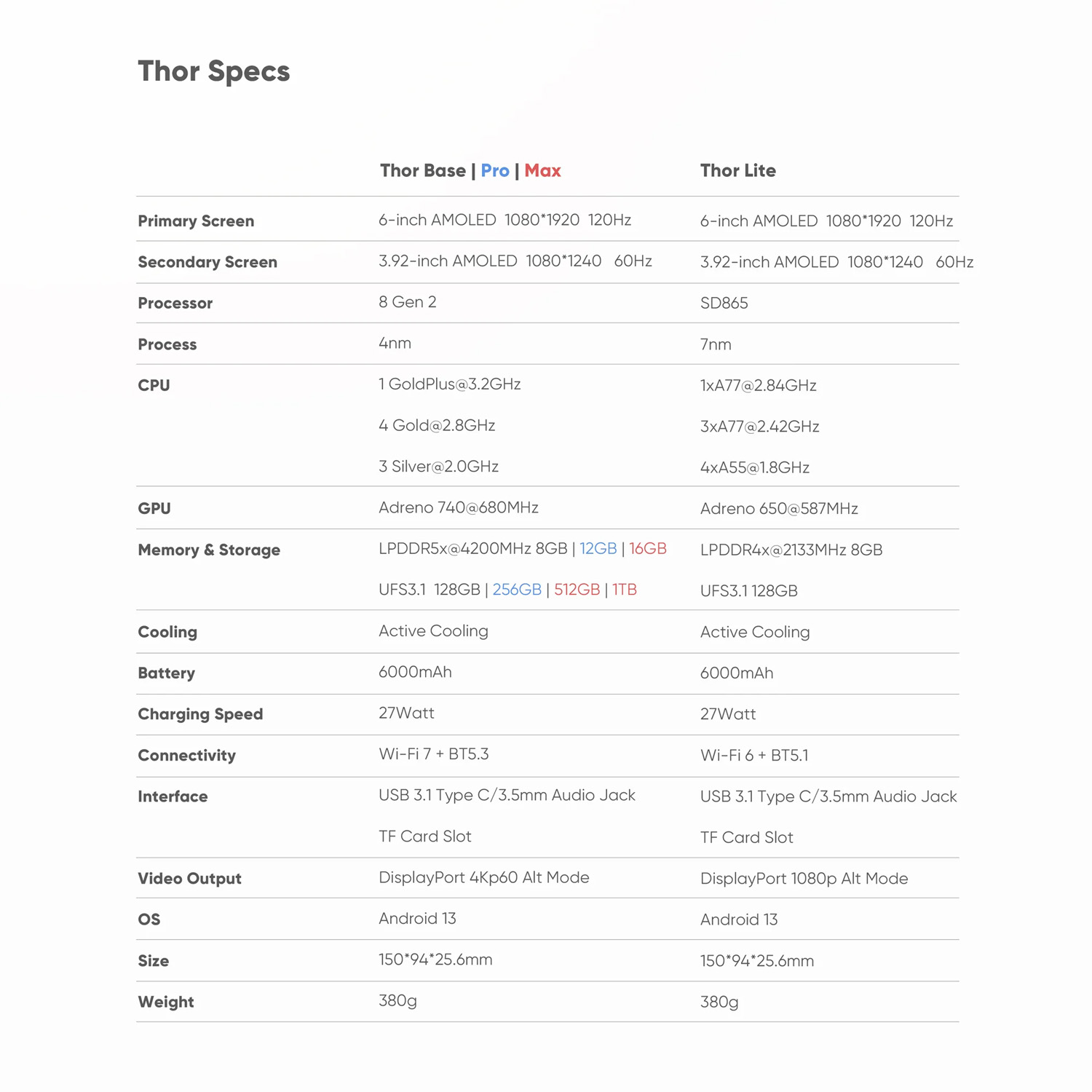 Thor Base, Pro & Max