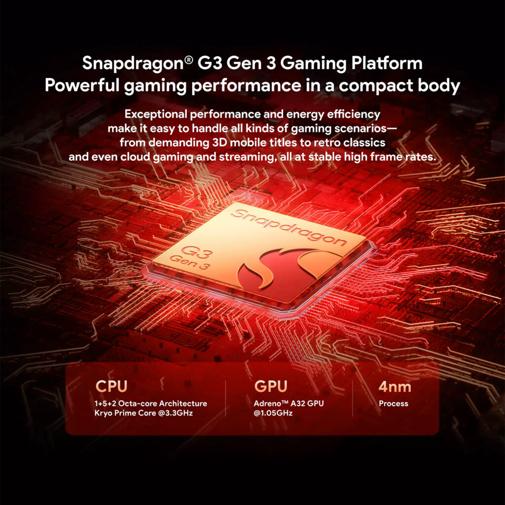 - Processor: Qualcomm Snapdragon G3 Gen 3 or Snapdragon 8 Elite